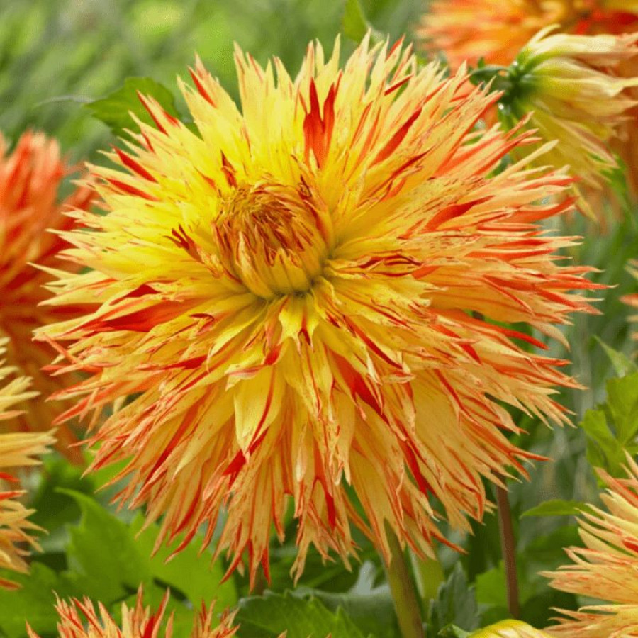 Жоржина ‘Cheyenne Chieftain’ – це витвір садового мистецтва, що спокушає своєю екзотичною красою і чудернацькою формою. Ця новинка на ринку жоржин вразить вас своїми яскравими та ефектними квітами, які виглядають як вогненно-червоні зірочки. Квіти цієї жоржини вражають своєю величчю, що сягає 15-20 см у діаметрі, нагадуючи столову тарілку. Їх форма виражена в торочкуватих, скручених пелюстках, що надає суцвіттю делікатності та унікальності. Відзначте свій сад цим вишуканим сортом, і ви отримаєте не лише багатоцвітіння з середини літа до перших заморозків, але й вражаючий елемент садової композиції та букетів. ‘Cheyenne Chieftain’ – це ідеальний вибір для тих, хто цінує яскраві та вишукані квіти в саду.